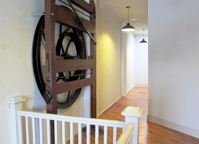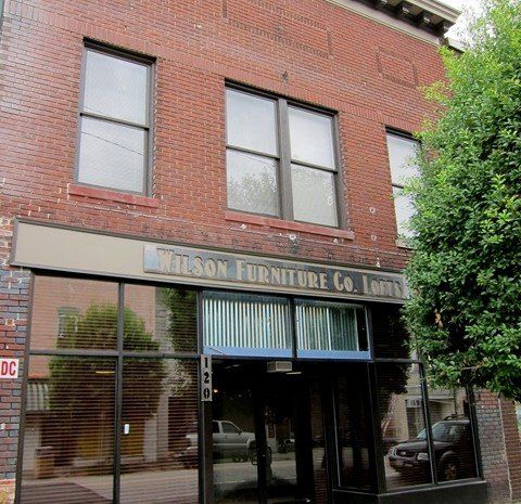 The buildings storefront has undergone two renovations in its lifetime – one in 1915 by the Wilson Furniture Company and one in the 1950s by the Johnson Furniture Company. Above this newer storefront, the building’s three-bay facade boasts two single windows on either side of a double window. The building also includes a parapet that is capped with terra cotta tiles. The interior of this building includes hardwood floors upstairs and down as well as an original wood staircase and exposed brick walls.